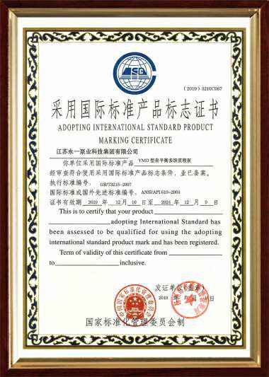 YMD采用国际标准产品标志证书